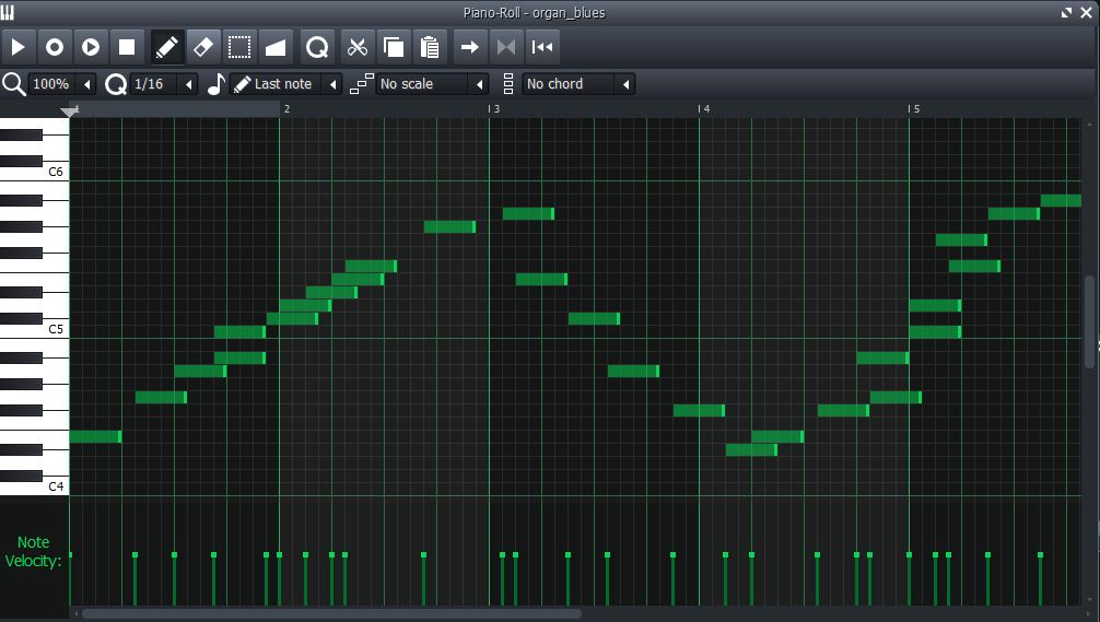 And there is no dragging of mouse either, we simply insert 7 notes with exact distance. That distance will determine the glissando speed. I find that 1/64 creates a perfect rock-a-billy glissando, just as in the video.